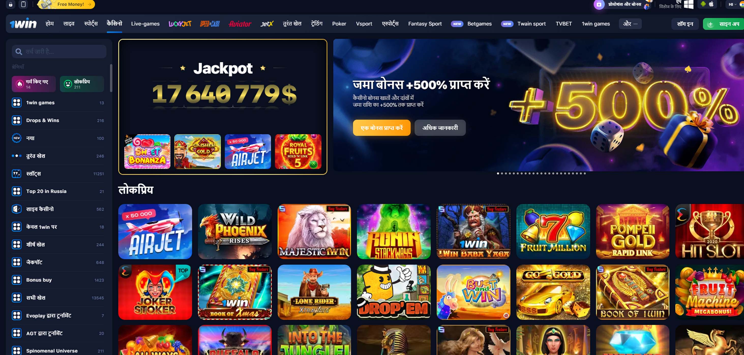Bonus on first deposit 125% 34 000 INR + 250 freespins
